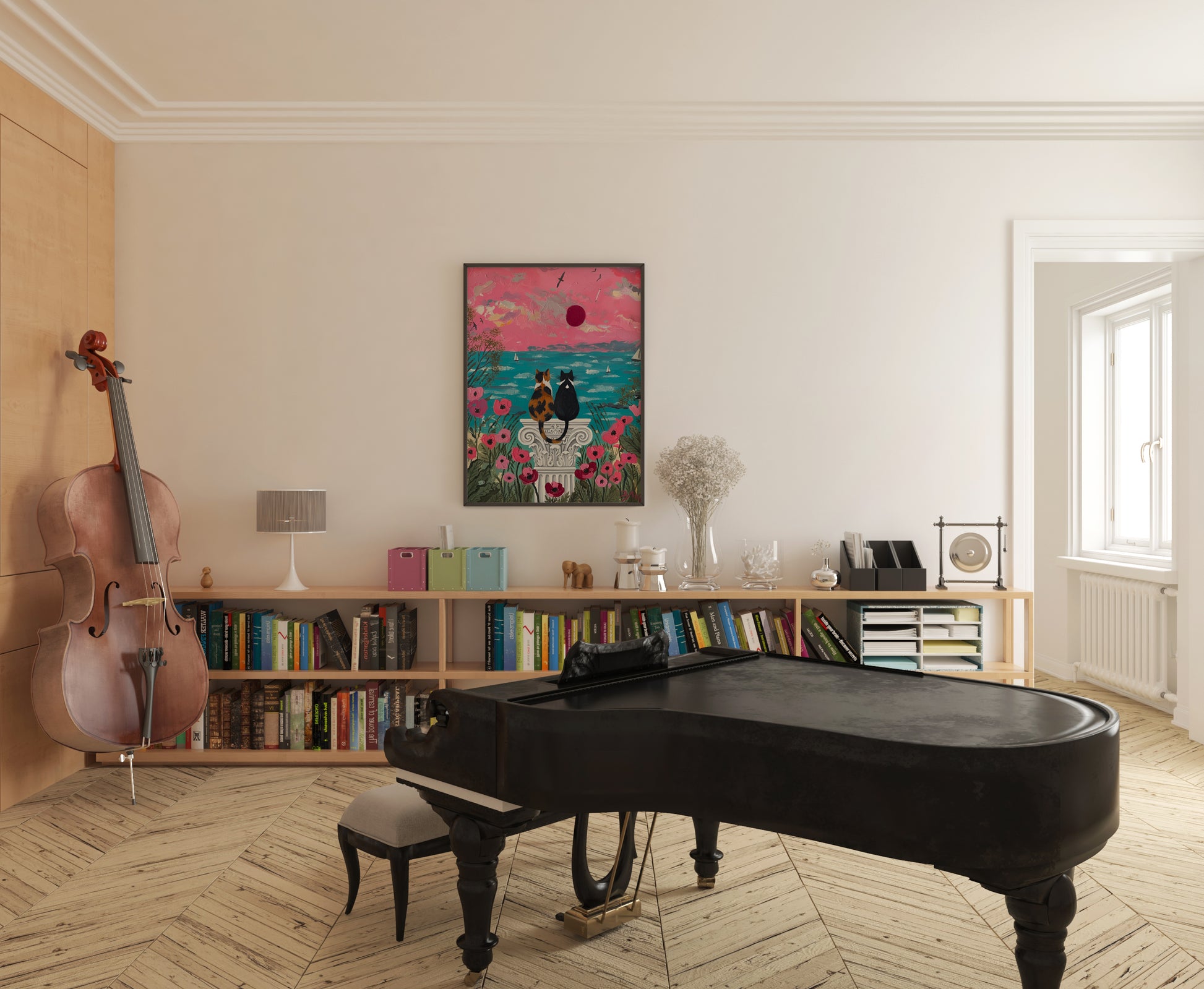 Perfect for cat lovers, cottagecore decor, or anyone who feels peace by the ocean.