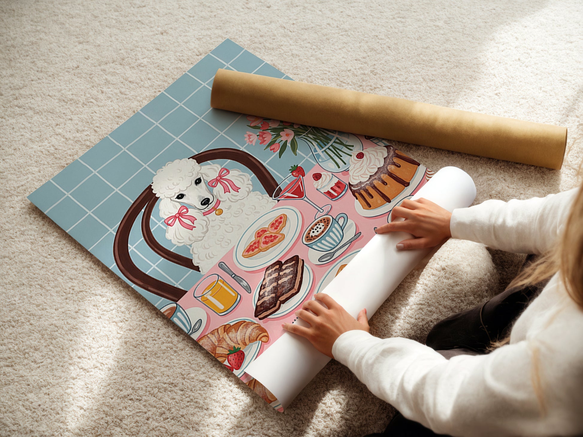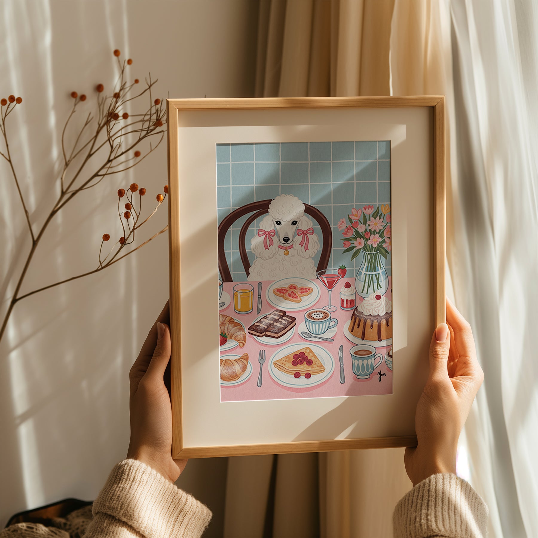 Bring joy and charm to your space with this adorable wall art featuring a fluffy white poodle patiently waiting at the dining table. Perfect for dog lovers, pet owners, and anyone who loves cute and whimsical decor. This high-quality art print adds a playful and cozy touch to kitchens, dining rooms, and living spaces.