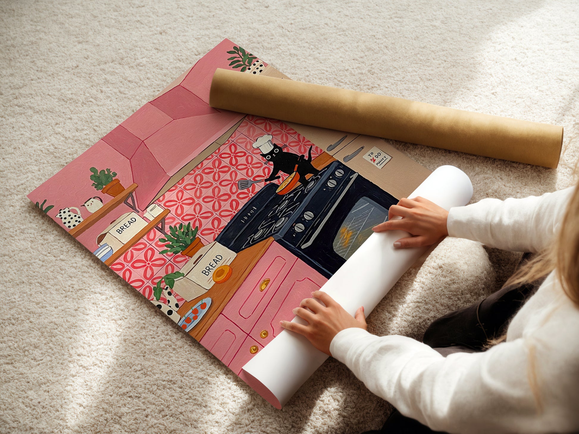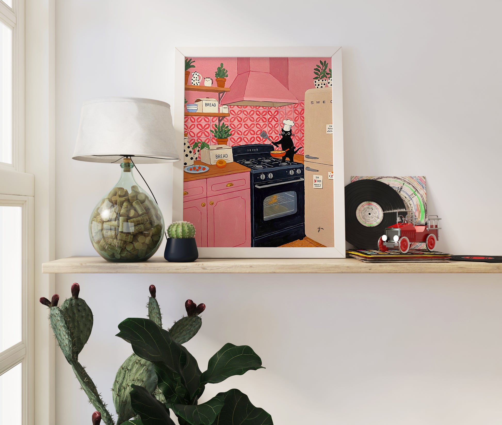Trendy Aesthetic Black Cat Chef in Pink Kitchen – Cute Cooking Wall Art for Cat Lovers & Kitchen Decor Print Cat Lover Gift